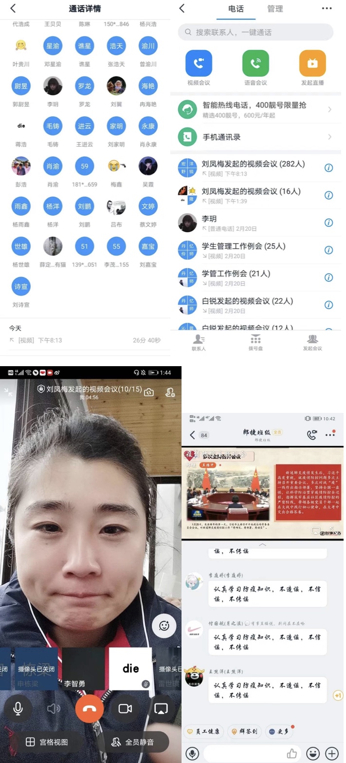 在班团中召开“爱国抗疫”的视频主题班会