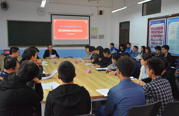 3月22日下午,陈良国家级技能大师工作室第五期国技大师班师徒协议签字仪式在物联网应用中心举行。9名师傅(教练)与44名徒弟(学员)分别签订了师徒协议。
