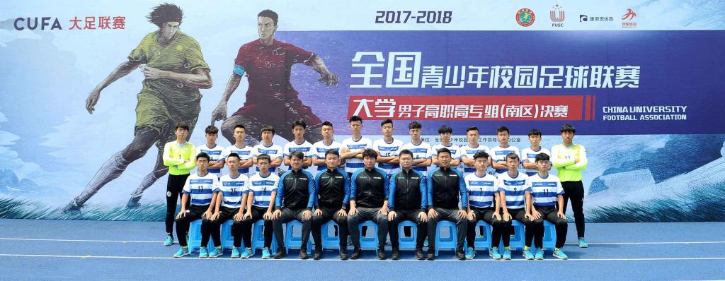 2018年4月21日至5月1日,2017-2018赛季,全国青少年校园足球联赛大学男子高职高专组(南区)决赛在江苏省苏州市苏州工业职业技术学院隆重开幕。我校党委书记孙卫平教授亲自担任领队,带领我校男子足球代表队参加了此次赛事,在经过10天6场比赛的激烈角逐后,我校男子足球队分别以2:0、5:0、3:0、9:0 、4:1(点球)的优异成绩力克江西泰豪动漫职业学院、云南交通职业技术学院、上海工商外国语职业学院、江阴职业技术学院,广东岭南职业技术学院。最终以5胜1负,进20球,失1球的战绩,获得南区决赛第三名。再次获得7月份全国总决赛资格。