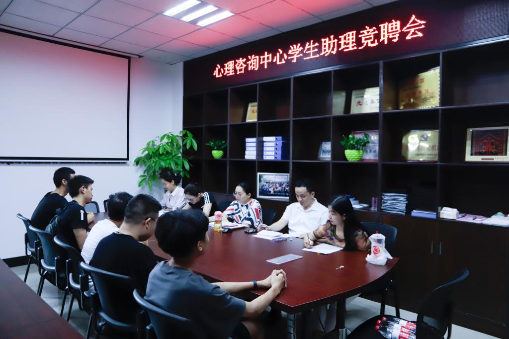 2019年6月27日下午,大学生心理健康教育与咨询中心在7201会议室举行了2019-2020学年学生助理竞聘会。评委小组由大学生心理健康教育与咨询中心简洁副教授、大学生心理健康教育与咨询中心秦韬老师、智能制造与汽车学院周春霞老师、人工智能与大数据学院朱明敏老师、通信学院李岚老师5名老师组成。竞聘会按照学生应聘岗位进行分组,每组5人,评委们从专业能力、岗位认知及综合素质三个方面对70位应聘学生进行了面试,根据评分和评委意见,择优录取。