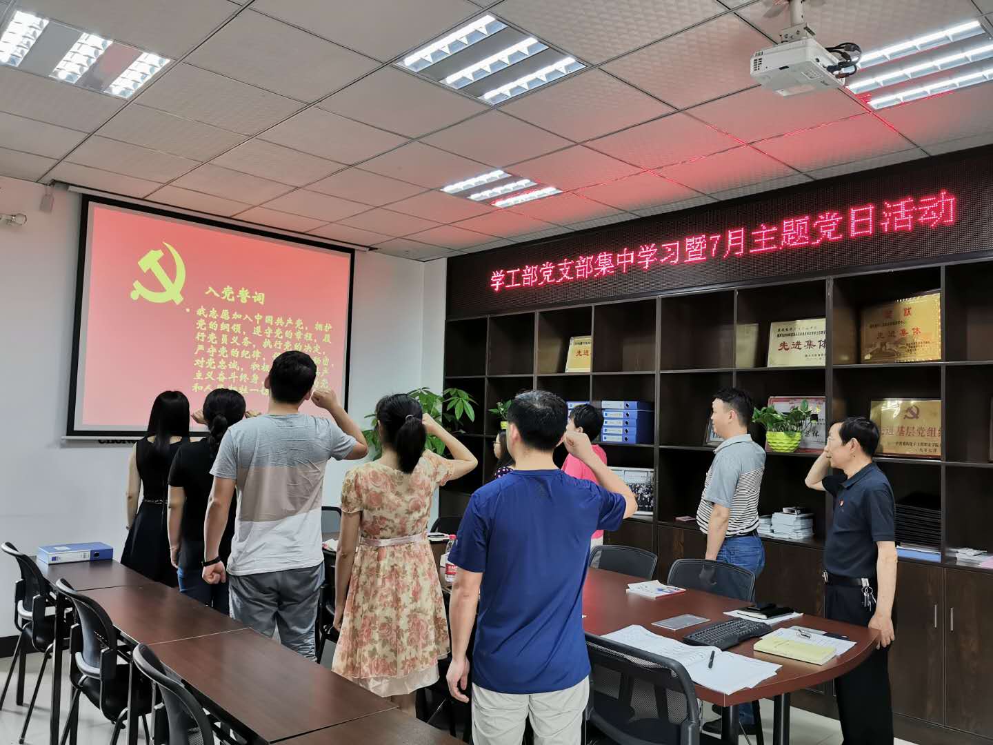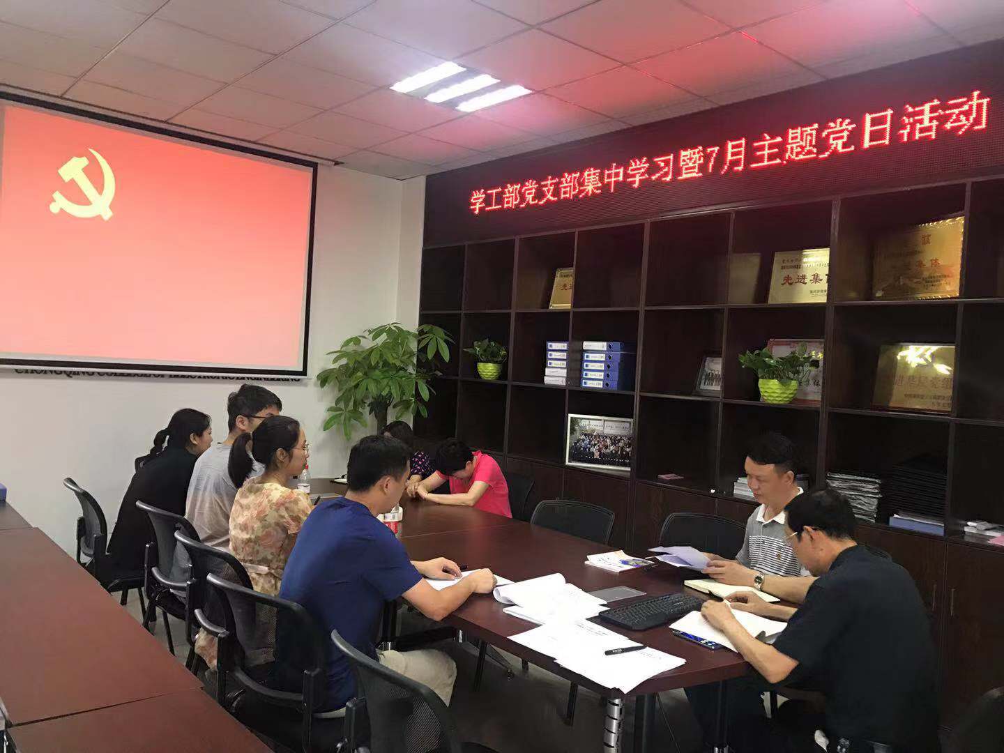 2019年7月4日(星期四)下午,学工部党支部在7201会议室组织开展集中学习暨7月主题党日活动。本次党日活动的主题是:我为党旗添光彩。主题党日活动由支部书记何光明同志主持。