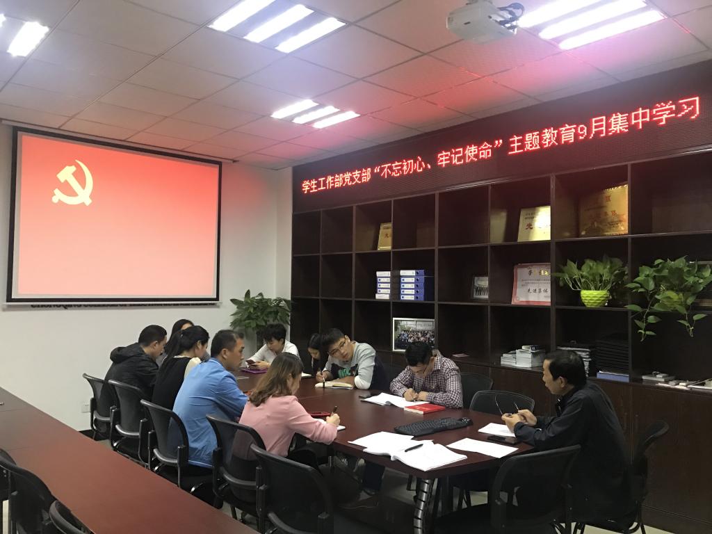2019年9月19日下午,学工部党支部在7201会议室组织开展“不忘初心、牢记使命”主题教育9月集中学习。学工部党支部全体在家党员同志参加了主题教育集中学习。主题教育集中学习由支部书记何光明同志主持。