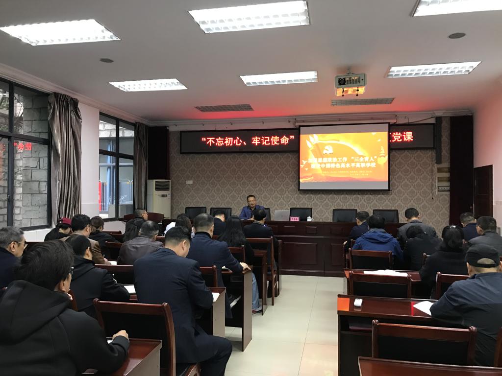 为了进一步深化“不忘初心、牢记使命”主题教育,使广大党员同志全面落实“守初心、担使命、找差距、抓落实”的总要求,切实做到对党忠诚、为党分忧、为党担责、为党尽责,永远做党的初心和使命的实践者。11月8日上午,校党委委员、副校长冉学农教授以《加强和改进思想政治工作“三全育人”建设中国特色高水平高职学校》为题,为学生工作部党支部、招生就业处党支部、安全管理处党支部、应用技术学院党总支等支部党员同志讲授了一堂生动的主题教育专题党课。