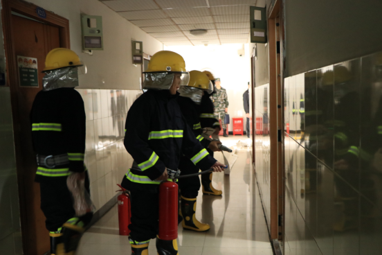 演练过程中,8214寝室烟感报警器触发报警,宿管人员查看后立即报告监控中心发生火情,监控中心接到现场火情报告后,对警情做出判断,向安保部主管报告并通知各应急小组。安管处处长接到火警报告后立即向分管校领导报告,并启动消防应急预案,成立现场指挥部。各应急小组成员根据预案立即行动;灭火行动组控制火势蔓延和扑救现场火情;技术处理组、疏散引导组、后勤保障组立即实施保障应急措施,关闭非消防重要设施,顺利疏散被困人员并救护受伤人员。直至所有人员安全疏散至安全区域后,各学院对疏散人数进行清点、汇报。通过本次演练,各教职员工和学生深刻认识到消防安全的重要性和紧迫性,学习了火灾现场应急逃生、报警和初期火灾预防等消防知识。