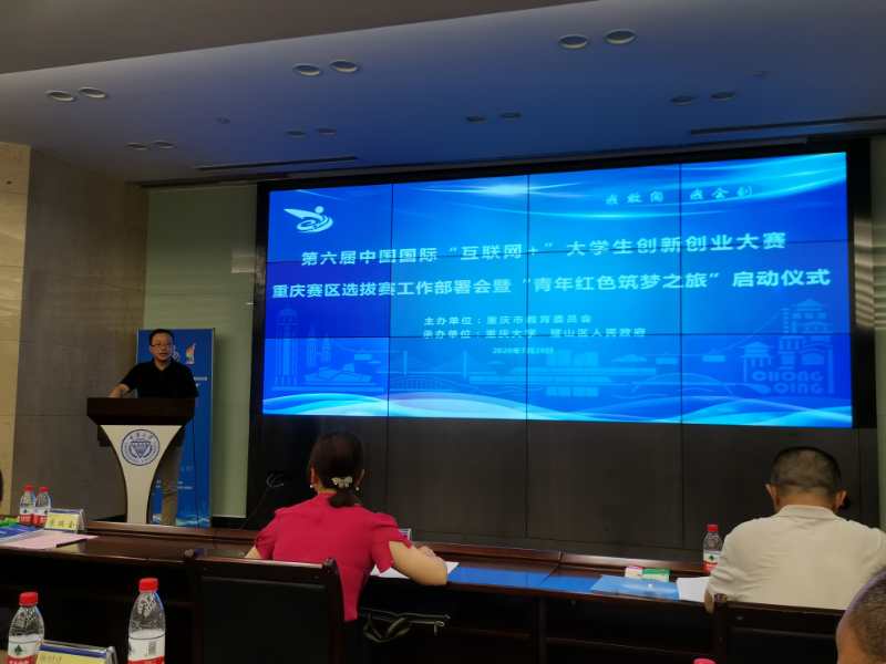 2020年7月20日上午9:00,由重庆市教委主办、重庆大学和璧山区承办的第六届中国国际“互联网+”大学生创新创业大赛重庆赛区选拔赛工作部署会暨“青年红色筑梦之旅”线上启动仪式,在重庆大学隆重举行,重庆市教委高教处吴岚副处长、重庆大学、璧山区以及各学校相关负责人参加了本次会议。