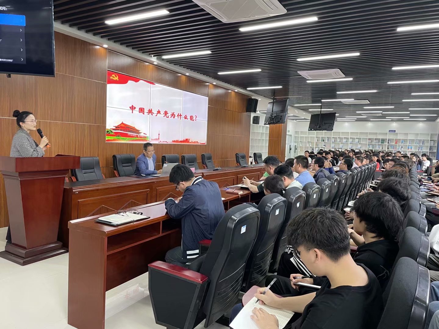 2021年5月27日上午,副校长冉学农在13-307会议厅以《中国共产党为什么能》为题给师生作党史教育宣讲报告。党委宣传部、党委学工部、招生就业处、安全管理处全体党员以及电子与物联网学院师生代表共120余人聆听了这堂报告。报告会由党委委员、党委宣传部部长疏勤主持。