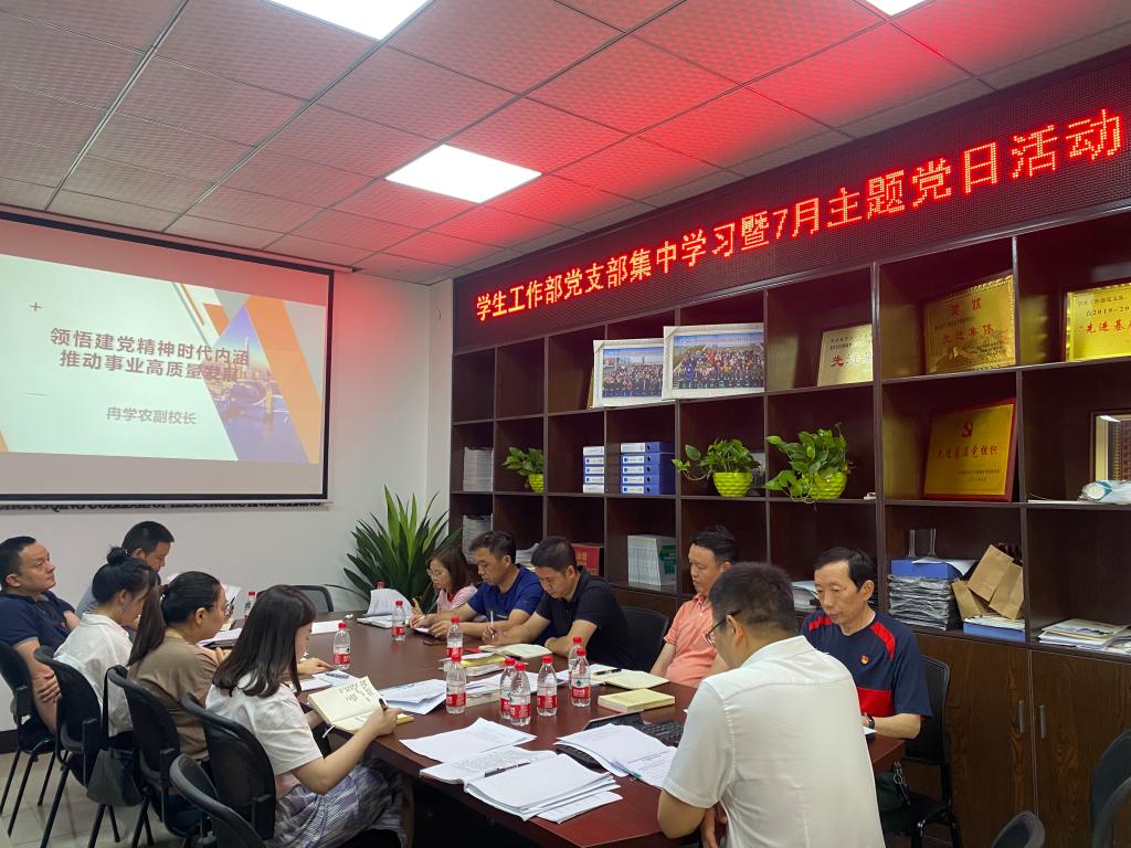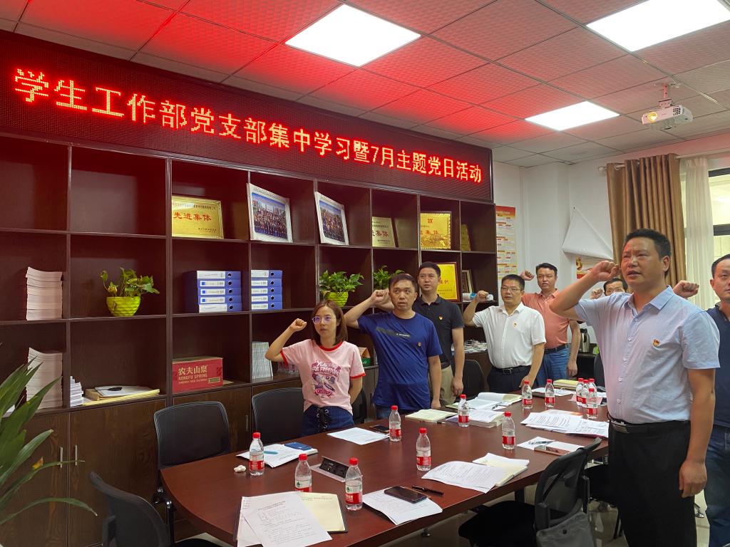 2021年7月6日(星期二)15:00,学工部党支部在7201党员活动室组织开展了集中学习暨7月主题党日活动。学工部党支部12名同志参加了集中学习暨主题党日活动。党委委员、副校长冉学农同志以普通党员身份参加了集中学习暨主题党日活动。集中学习暨主题党日活动由支部书记何光明同志主持。