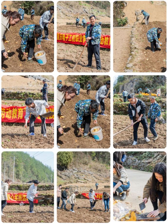下午,冉学农一行来到田间地头,与村民们一起开展春耕活动,用实际行动助力乡村振兴。3月的乡村阳光明媚、春色正好,穿上迷彩服的村民们正在种植土豆,看到这里,队伍里的年轻老师也跃跃欲试,纷纷想要体验一下干农活的乐趣。没有想到的是,种植土豆远比想象中要难。一番忙碌下来,老师们挖的沟渠歪七扭八、深浅不一,埋下去的土豆苗密密麻麻、或高或低,惹得村民们哈哈大笑。最终在村民们的指导下,老师们终于“标准化”地种好了土豆。参与劳动的学生公寓特色党支部书记唐吕俊驰表示:“没想到种土豆也是一门学问,通过这几个小时的亲自劳动,让我感受到了村民们的不容易,也更加坚定了我助力乡村振兴的决心,在今后的日子里,我将用实际行动为村民们多办一点好事、实事,为乡村振兴贡献自己的青春力量。”