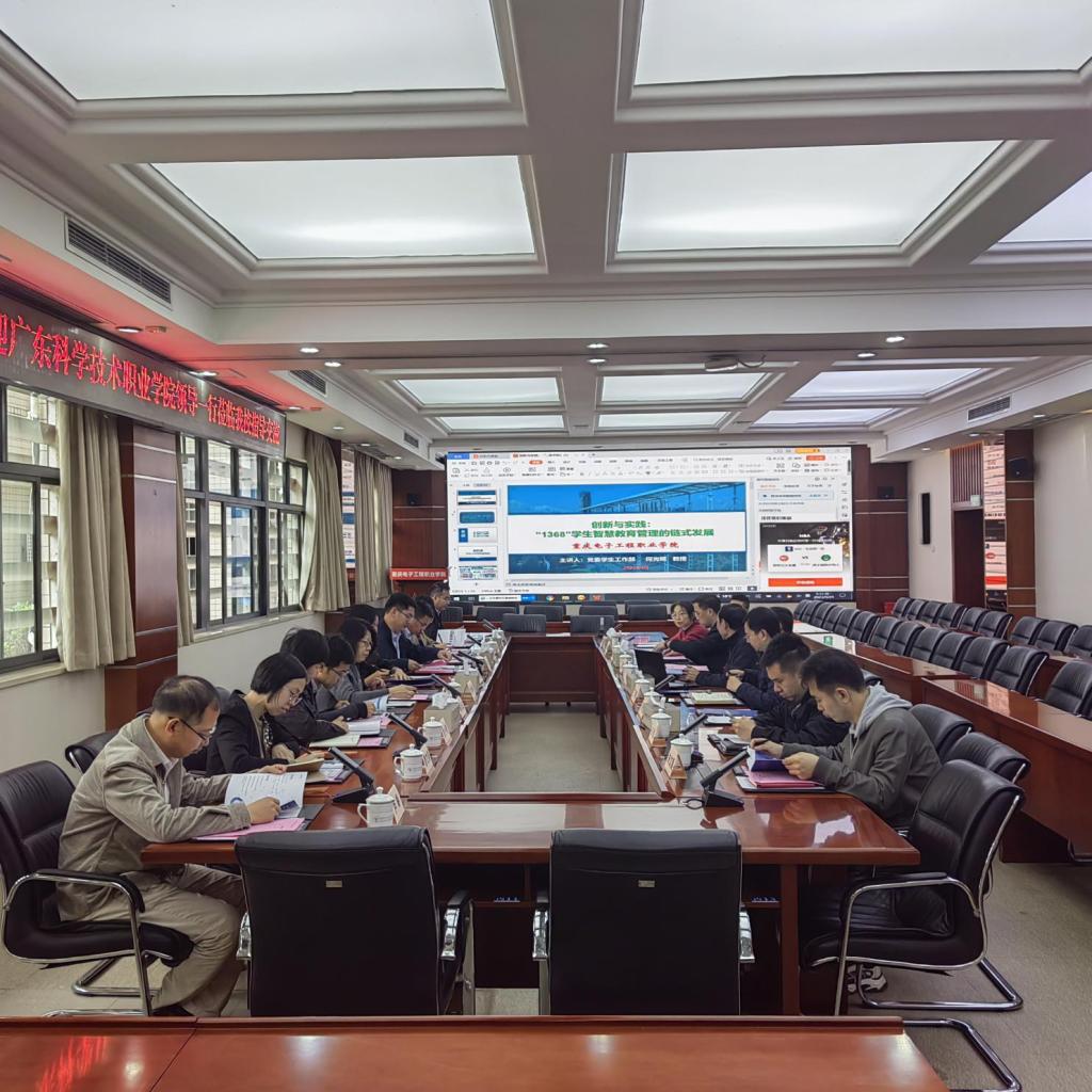 何光明部长对广东科学技术职业学院同仁们的到来表示热烈欢迎,并就我校的整体情况、历史沿革、办学规模、历年办学成果等方面作了介绍,对我校学生管理工作方面的亮点特色进行了交流,并作了题为《创新与实践:学生管理治理体系及能力提升——“1368”学生智能教育管理的链式发展》的交流报告。双方就学生素质教育管理情况、辅导员队伍建设、劳动教育开展情况等方面进行了深入探讨。
