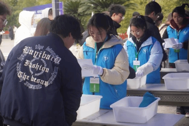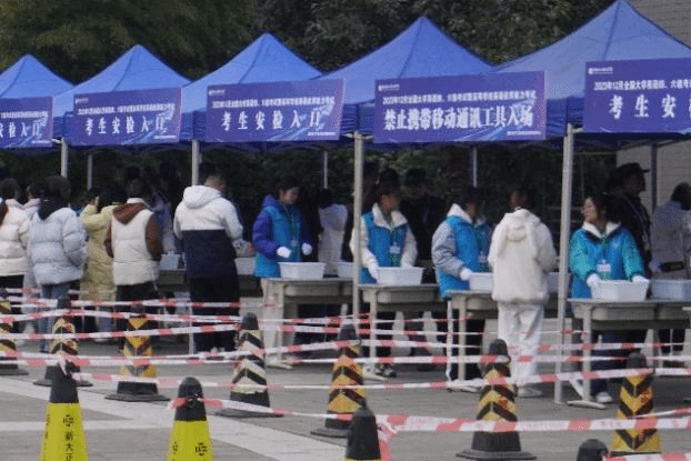 早上6:50,志愿者们有序来到学子芯广场集合,听从任务安排,明确分工。7:30左右,所有工作人员进入规定岗位,等待考生们的到来。在考生们陆续入场时,志愿者们进行物品检查、身体扫描、手机保管、引导考生等一系列志愿服务工作。在工作中志愿者们克服寒冷、认认真真、踏踏实实,对每一项工作都打起了十二分精神。