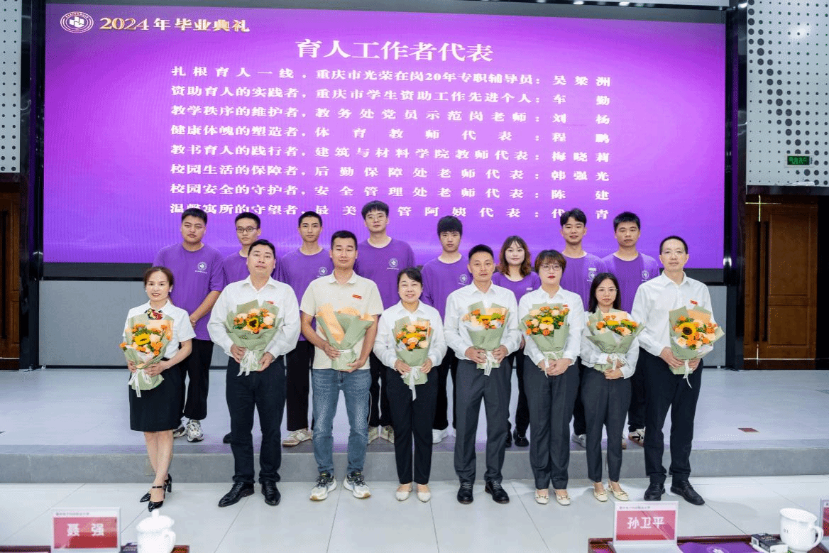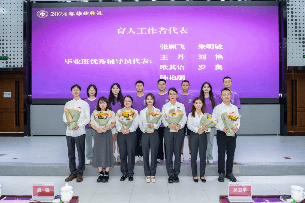 在毕业典礼中,2024届毕业生用一束鲜花向辛勤工作在教学、管理、服务一线的全体老师们致以崇高敬意和衷心感谢。