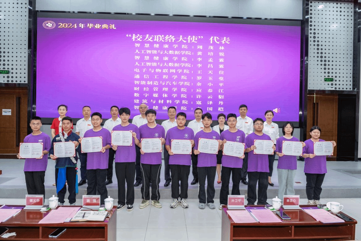 学校领导为市级优秀毕业生代表和毕业生校友联络大使代表颁发荣誉证书和聘书。