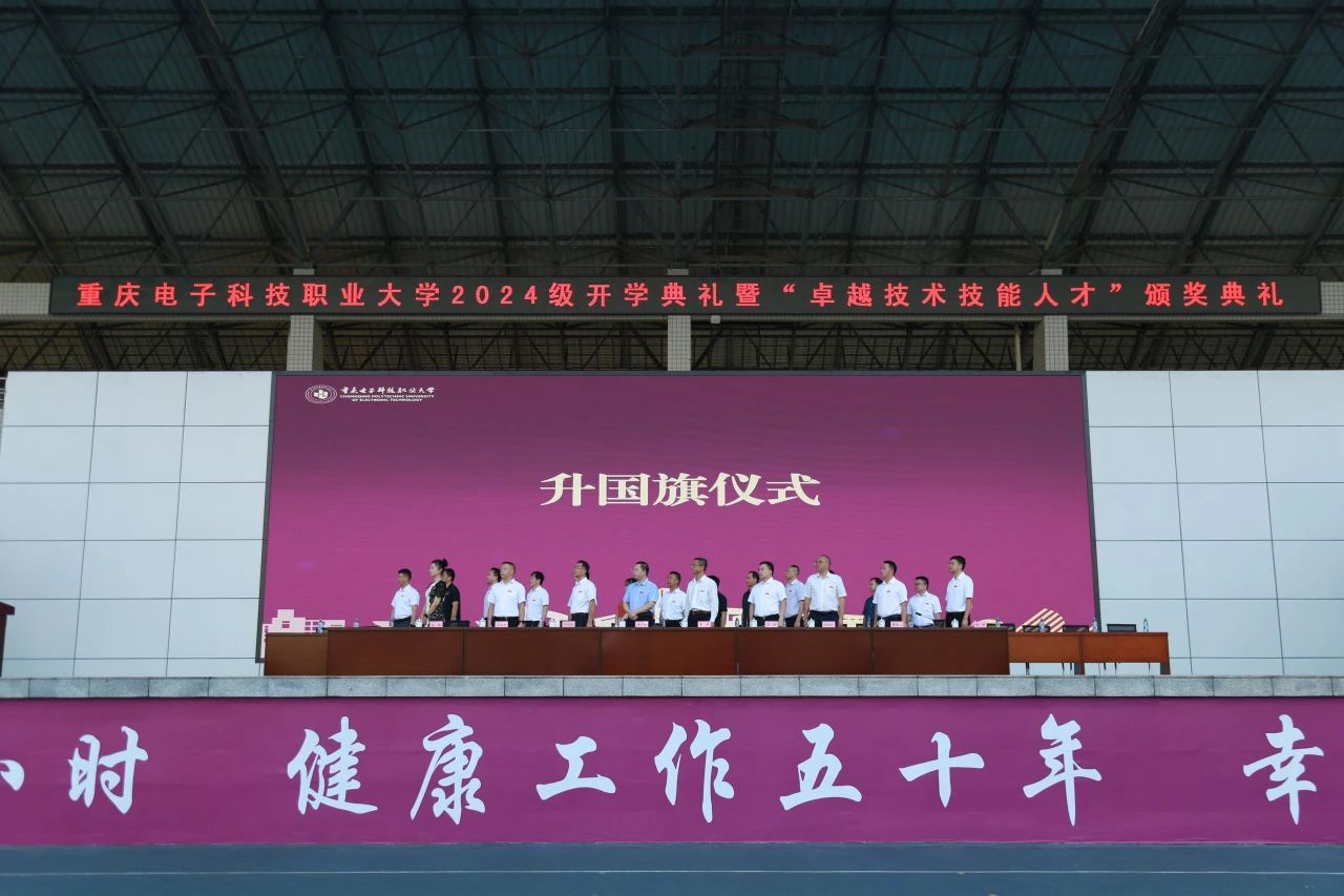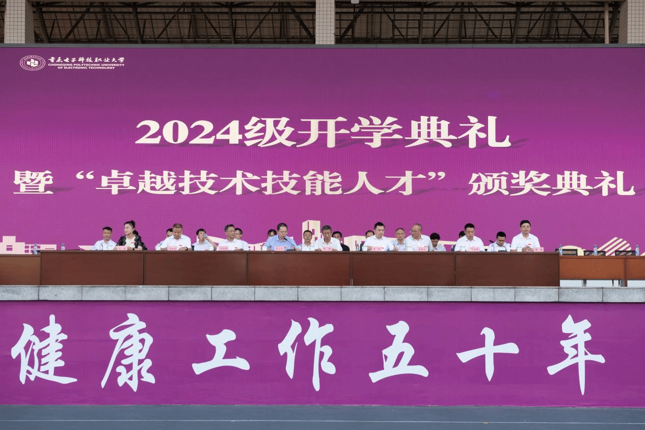 2024年9月27日上午,重庆电子科技职业大学2024级开学典礼暨“卓越技术技能人才”颁奖典礼在我校奕晖运动中心举行,学校全体领导,各职能部门负责人及二级学院党总支书记、院长、学管科长、新生辅导员、带训教官、“卓越技术技能人才”奖励获得者、重庆电子科技职业大学2024级新生参加了典礼。大会由党委副书记龚小勇主持。