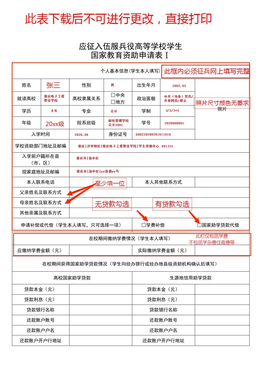 2、若是从学校去当兵:需备三张表Ⅰ原件(每张都双面打印)并贴好证件照(两张照片需一致)。