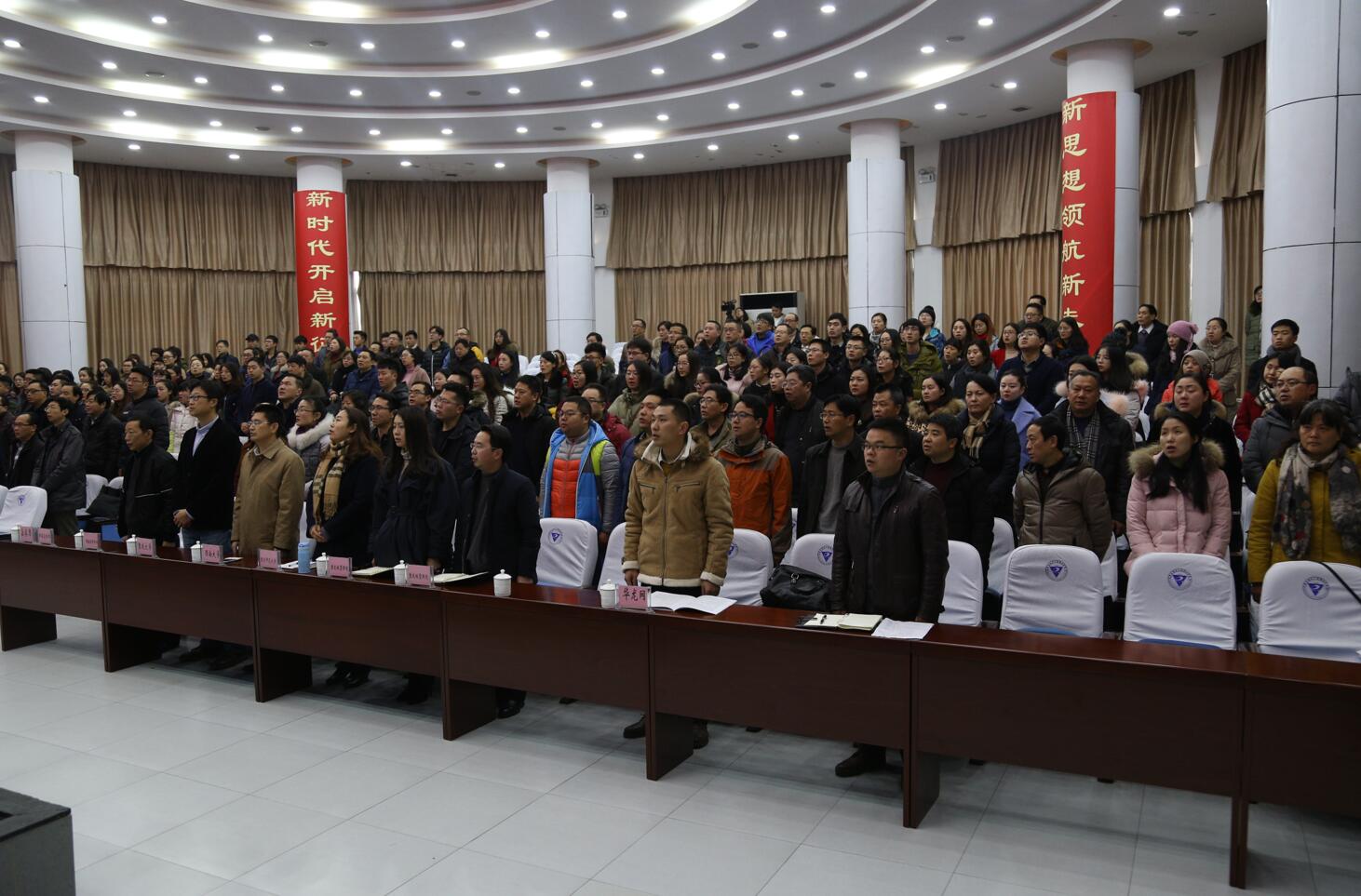 为深入贯彻落实党的十九大精神和习近平总书记“7.26”讲话精神,紧紧围绕“立德树人”根本任务,全面总结部署我校思想政治教育工作,进一步加强我校思想政治教育工作的管理与研究,2018年1月17日,我校召开以“搭建学校‘云思政’大平台,构建重电‘大思政’新格局;新时代开启新征程,新思想领航新未来”为主题的2017年思想政治教育研究会年会。上午9点30分,会议在博远厅准时开始,重庆市委宣传部调研员、重庆市政研会副秘书长卞明高,重庆市教委学生处处长奚弟超,重庆大学马克思主义学院思政专家、硕士生导师杨林博士,西南大学政治与公共管理学院党委书记、硕士生导师思政专业博士李栋宣教授,重庆师范大学团委书记、全国辅导员年度人物毛霞,重庆城市管理职业学院宣传部部长、思政部主任喻永均教授,重庆城市管理职业学院党委学生工作部部长徐颖,我校党委书记孙卫平教授,党委副书记唐玉林教授,纪委书记陈丽教授,我校副校长幸昆仑、副校长刘成俊,原重庆电子工程职业学院副校长(思政研究会会长)苏小柱教授等领导出席了本次大会。我校处科级干部、教研室主任、专业带头人、全体辅导员(班主任)、思政课教师及思政研究会成员近300人参加了本次年会。