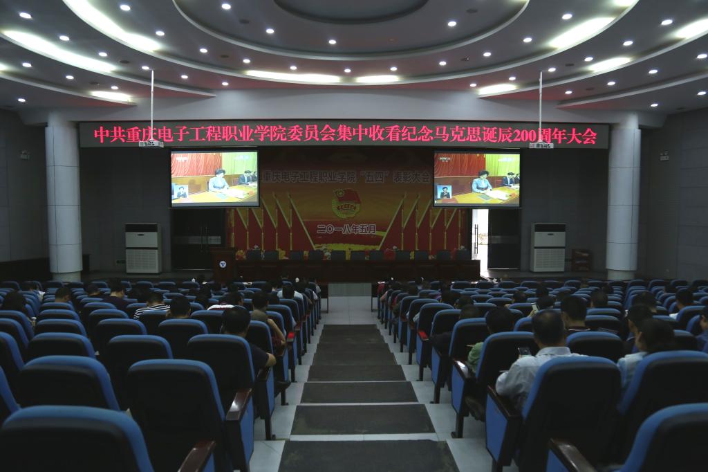 纪念马克思诞辰200周年大会于2018年5月4日上午10时在人民大会堂举行。中共中央总书记、国家主席、中央军委主席习近平出席大会并发表重要讲话。我校采取集中观看,各党支部分散学习等多种形式,组织收听收看了直播实况。学校领导班子、全体处科级干部在学校博远厅集中收看了大会直播。