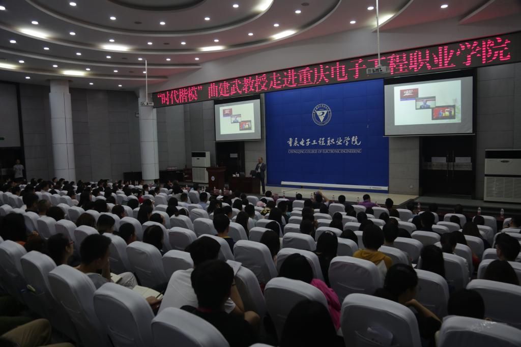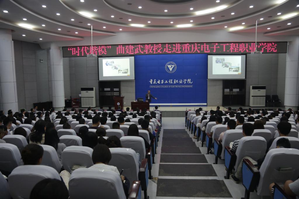 2019年5月10日晚上,重庆电子工程职业学院博远厅座无虚席。受党委学生工作部邀请,全国时代楷模、大连海事大学辅导员曲建武教授来到我校,以“给学生心灵埋下真善美的种子”为题为师生们作了精彩讲座。该活动由中共重庆电子工程职业学院委员会主办,党政办公室、党委宣传部、党委学生工作部、人力资源处承办。重庆大学思想政治研究中心副主任蒲清平教授、重庆商务职业学院副校长舒鸿、重庆商务职业学院学工部部长胡大勇、重庆医药高等专科学校学工部部长陈立书、校党委组织部、党委宣传部、党委学工部负责人、各二级学院党总支书记、副书记、学管科科长、团总支书记、全体辅导员、学生代表以及重庆医药高等专科学校和重庆商务职业学院的两课教师、辅导员代表参加了本次讲座。本次讲座由副校长谢义华主持。