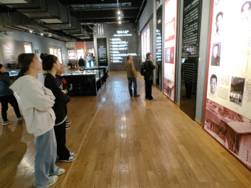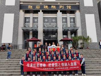 在参观红岩魂陈列馆时,遇到了一同来学习党史、学习红色故事的行知学校的少先队员们,团支部成员们不断向少先队员们讲解红岩魂陈列馆的历史,讲述着陈列馆内的一张张照片、一段段文字,让这群新时代的少先队员们更加深入的了解中国共产党的奋斗历史。