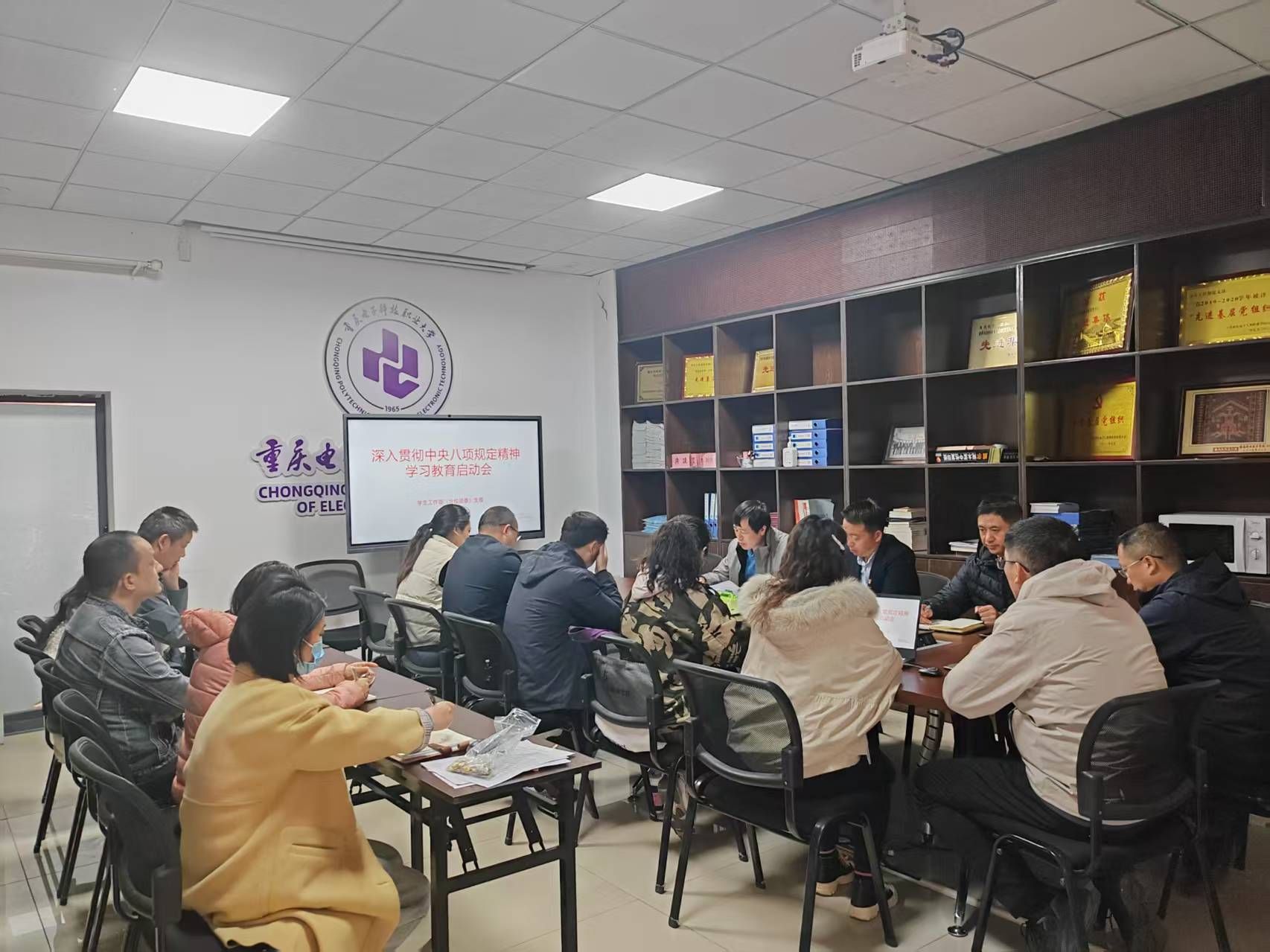 会上,党支部书记全面传达了《中共重庆电子科技职业大学委员会印发<关于在全校开展深入贯彻中央八项规定精神学习教育的实施方案>的通知》等文件精神,详细讲解了《实施方案》并对党支部学习教育工作进行全面动员和系统部署。会上明确要求全体党员同志,要以高度的政治自觉、思想自觉和行动自觉,将学习教育作为当前一项重要政治任务抓紧抓实,班子成员要落实 “一岗双责”,领导干部带头示范,切实把思想和行动统一到党中央决策部署上来,推动中央八项规定精神落地生根,为学校高质量发展提供坚强作风保障。