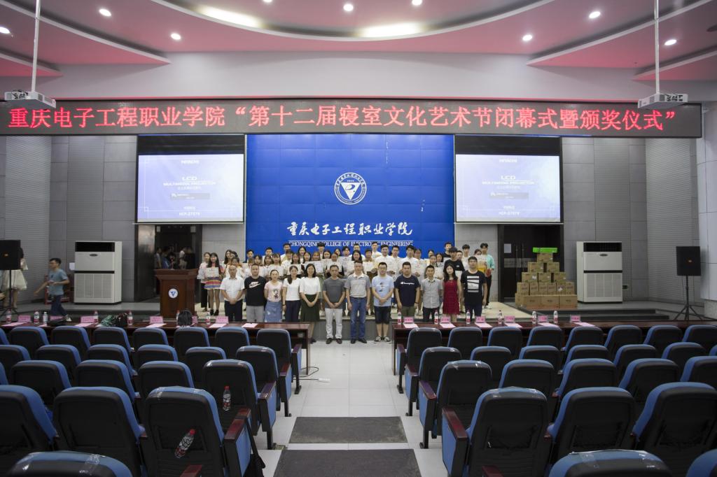 2019年6月25日,我校“筑梦青春新时代,重电让我寓见你”第十二届寝室文化艺术节闭幕式暨颁奖仪式于博远厅举行。党委学工部部长何光明、团委书记袁玉刚、党委学工部副部长蒋斌、综合科科长范可佳、宿管中心主任王立和,各二级学院学管科科长、辅导员、学生代表参加本次活动。