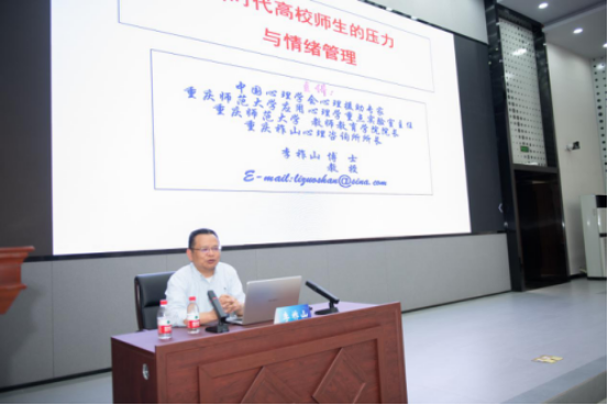 会议第二阶段邀请到重庆师范大学教育学院院长李祚山教授作《新时代师生的压力与情绪管理》专题讲座。李教授围绕心理健康概念及标准、心理健康现状及常见心理问题、压力与压力管理等几方面进行了讲解,传授了减压和情绪放松的方法。